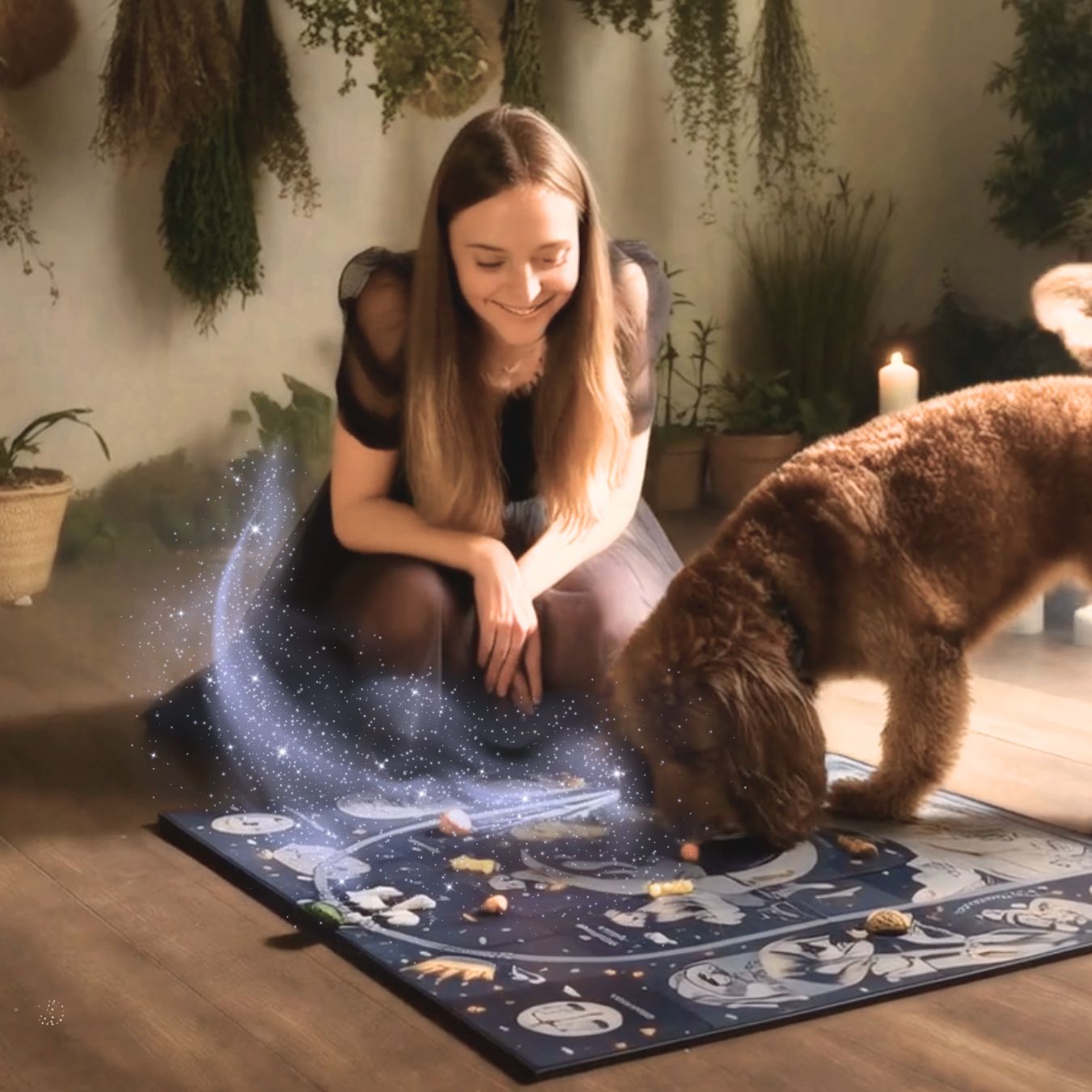 Seit jeher gelten Tiere nicht nur als treue Gefährten, sondern auch als spirituelle Führer. In diesem Spiel wird dein Haustier zum Medium: Einfach Leckerlis aufs liebevoll illustrierte Spielbrett streuen und sehen, welche Botschaft dein Hund wählt. Bereit für eine magische Reise mit deinem pelzigen Begleiter?