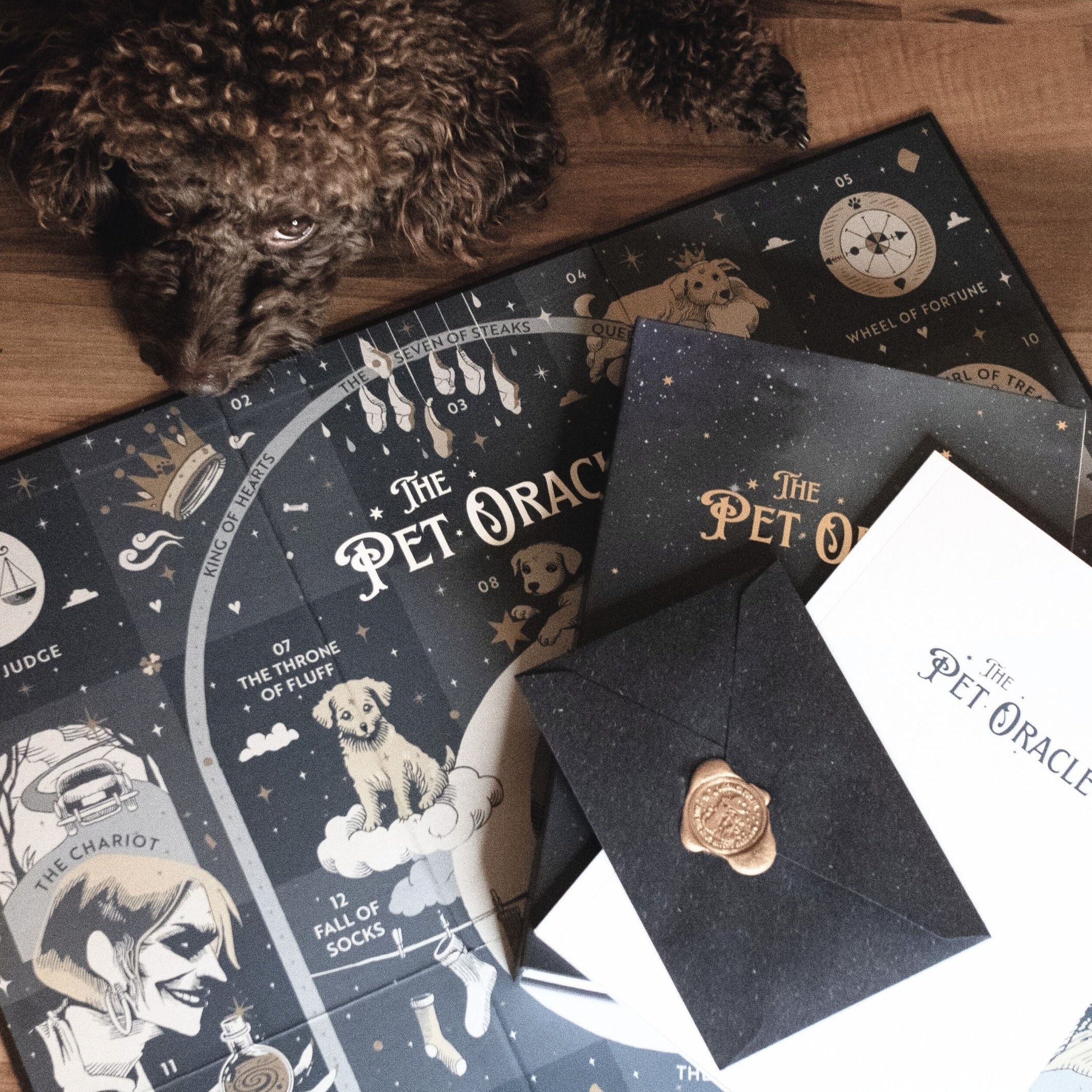Kein Handy. Kein Lärm. Nur du, dein Hund und ein Hauch Magie. Das Pet Oracle Prophecy Board ist ein handillustriertes Ritual-Spiel, bei dem dein Hund die Botschaft des Universums wählt. Ein ganz besonderes Geschenk – und ein Moment echter Verbindung.