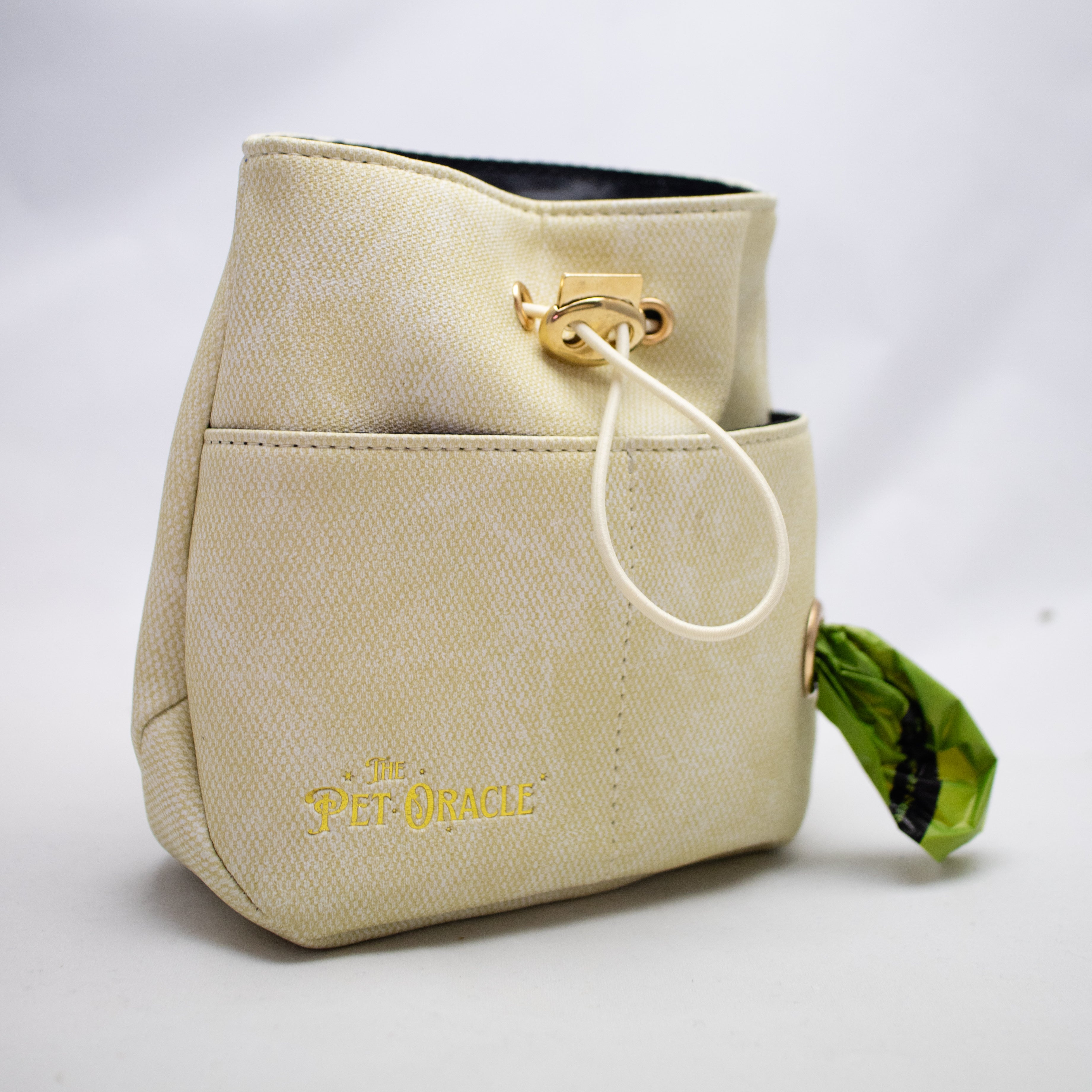 Der Leckerlibeutel aus veganem Leder ist handlich, wasserabweisend und mit einem magischen Design versehen. Er begleitet dich auf deinen Alltagsabenteuern, hält Hände frei und bringt Ordnung ins Chaos – inklusive praktischem Poobag-Halter. Clippe ihn einfach an Leine oder Hose und genieße flexible, unkomplizierte und stylische Momente mit deinem Hund.