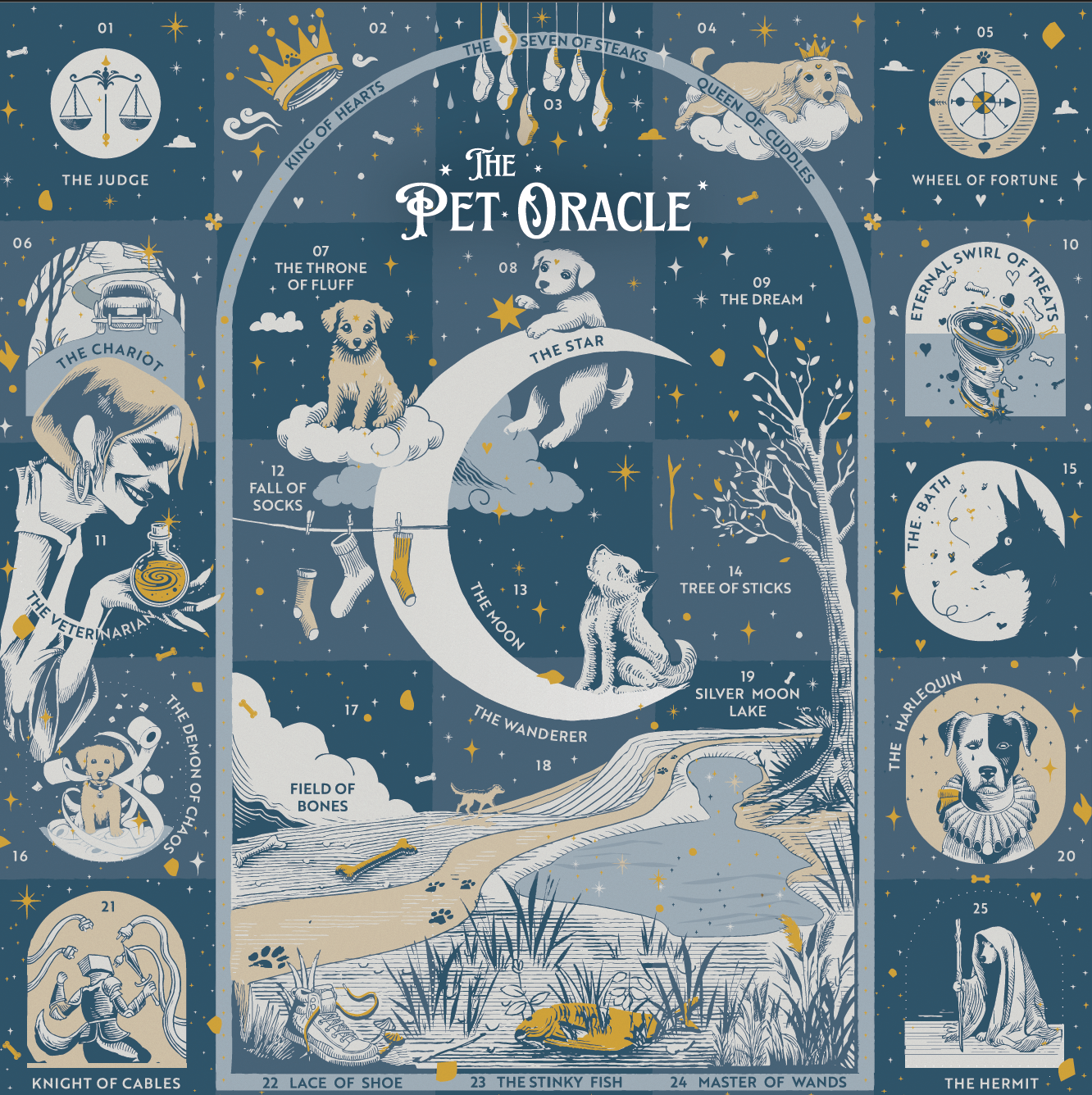 Das Pet Oracle ist ein verspieltes Ritual, bei dem dein Haustier zum Boten wird. Du stellst eine Frage. Dein Tier wählt. Das Orakel spricht. Perfekt für alle die noch an ein bisschen Magie glauben!