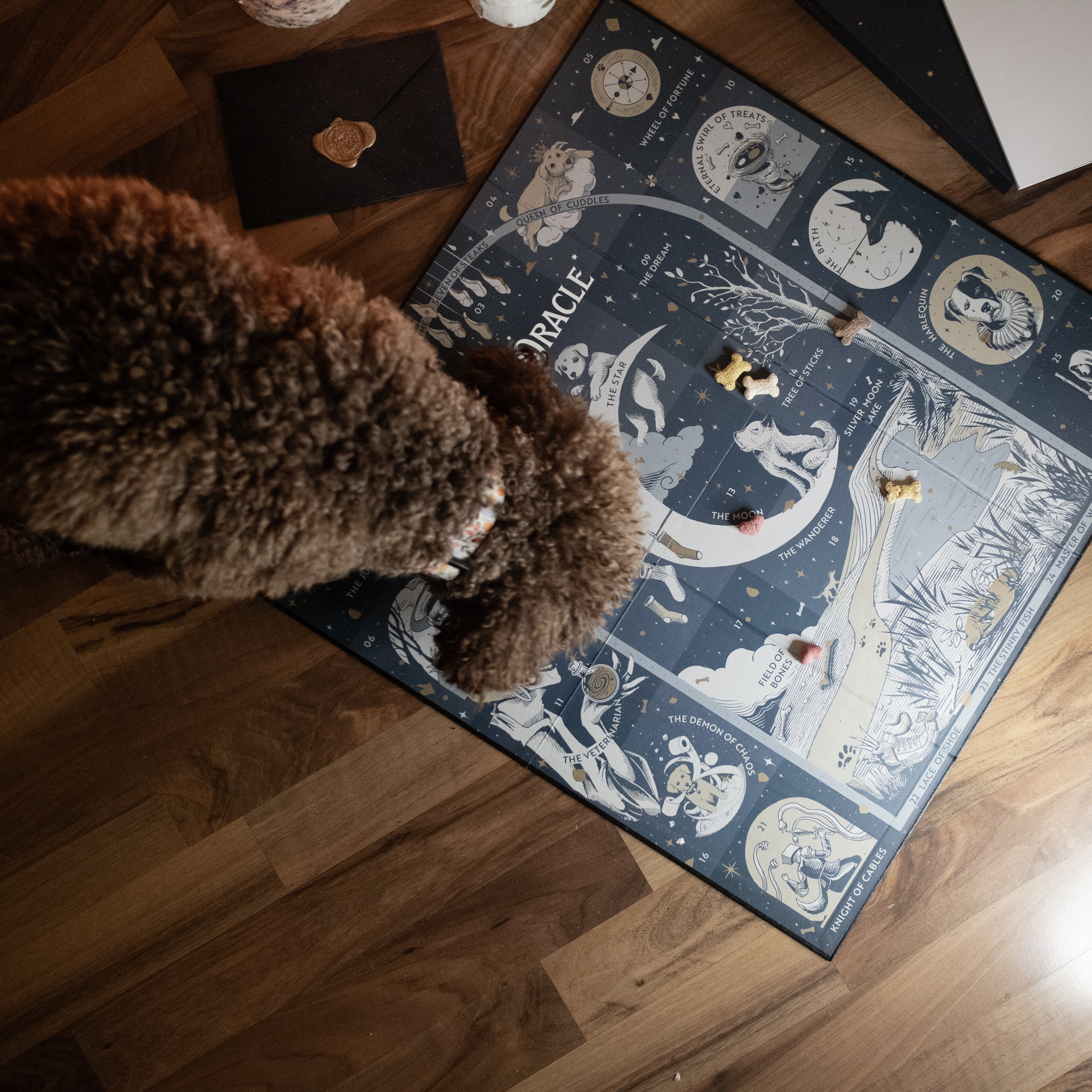 Kein Handy. Kein Lärm. Nur du, dein Hund und ein Hauch Magie. Das Pet Oracle Prophecy Board ist ein handillustriertes Ritual-Spiel, bei dem dein Hund die Botschaft des Universums wählt. Ein ganz besonderes Geschenk – und ein Moment echter Verbindung.